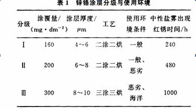 3.5鋅鉻涂層分級(jí)與使用環(huán)境
