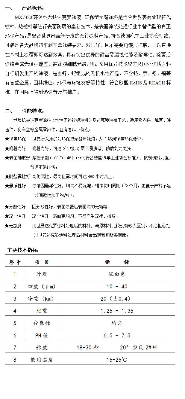 產(chǎn)品名稱:MX7320環(huán)保型無(wú)鉻達(dá)克羅涂液